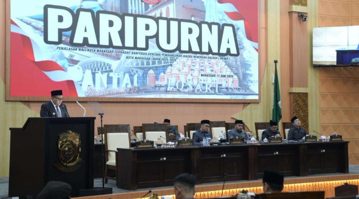 GADINGNEWS, MAKASSAR – Wali Kota Makassar, Munafri Arifuddin, memaparkan visi-misi dalam penyusunan Rancangan Peraturan Daerah (Ranperda) tentang Rencana Pembangunan Jangka Menengah Daerah (RPJMD) Kota Makassar Tahun 2025–2029. Hal itu disampaikan dalam Rapat Paripurna Keempat Masa Persidangan Ketiga Tahun Sidang 2024/2025 dengan agenda penjelasan Wali Kota, di DPRD Makassar, Rabu (11/6/2025).