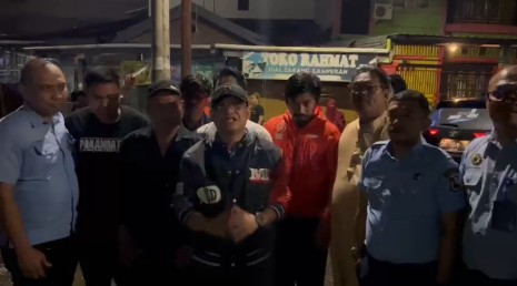 Beni dan Ayman didampingi oleh para pejabat struktural Perumda Air Minum Kota Makassar menyambangi pemukiman warga di Jalan Abdul Kadir Kelurahan Balang Baru Kecamatan Tamalate yang hingga malam hari masih tergenang air.